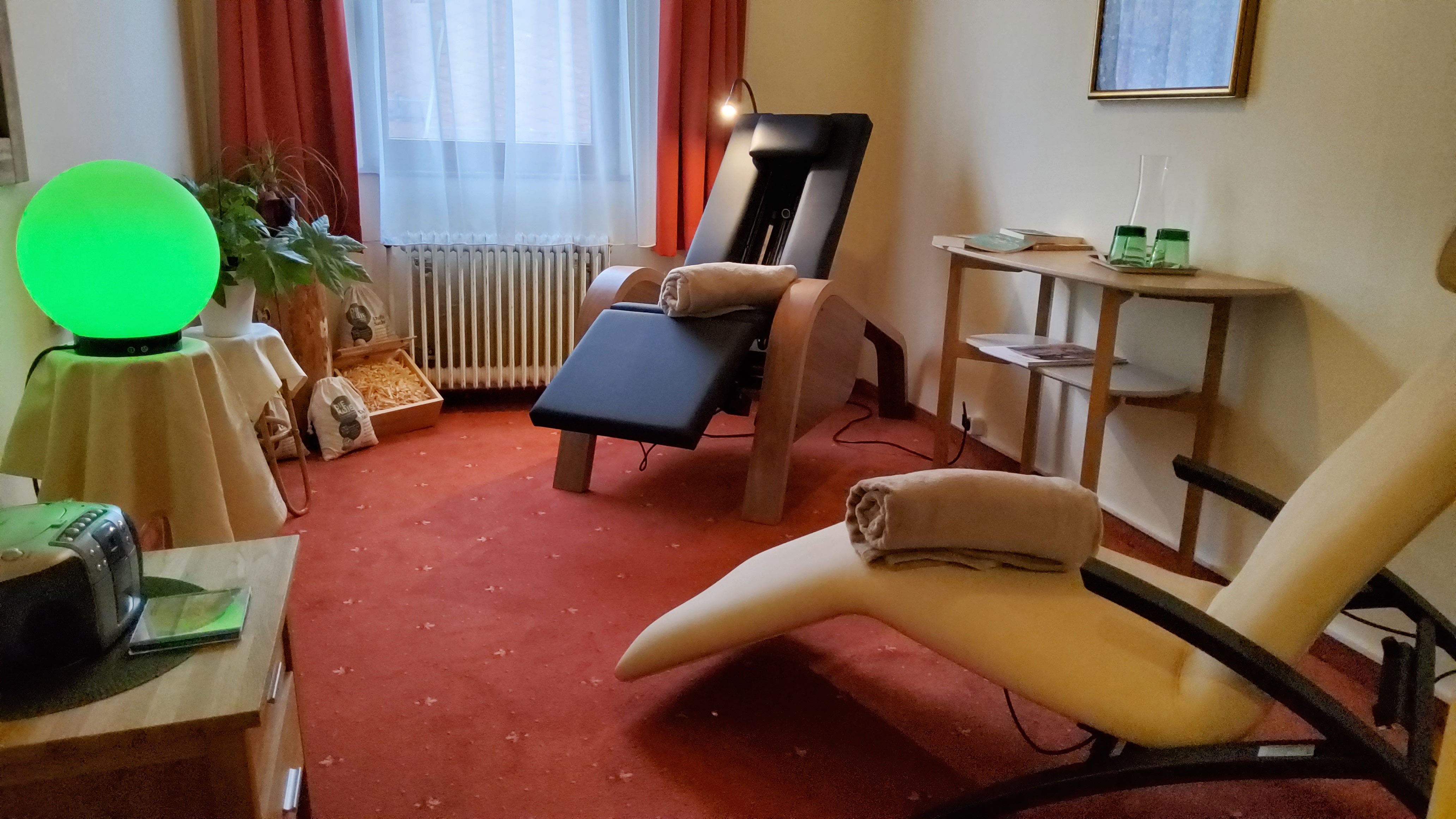 unsere NEUE Relax Lounge mit Zirbenduft – Infrarotliege – und Wärmeliege.